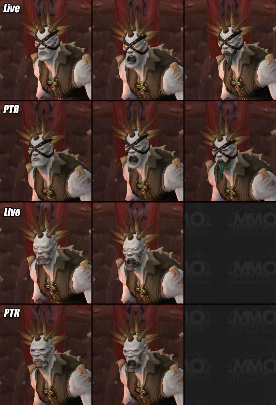 除了暗夜男的改动外,其他模型也有一些变化,如:女牛头人的斑点归来、亡灵眼睛发的光被取消、人类女增加了眼线、侏儒女移除了眼袋。以下是部分改动图示: