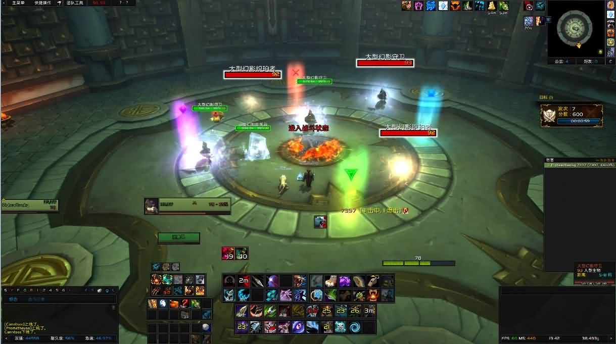 第四波:在这一波时靠近熊猫NPC的地方会刷新一个嗜血buff,这个buff我们不要踩到,留在第八波吃掉。这一波最中间会有螳螂妖,四周是魔古盾兵,我们首先给螳螂上病,立刻站在中间沸血传染,之后借琥珀宝珠带来的易伤依次击杀四周的四个魔古,要记得死前打出灵魂收割以方便转火。在30s会刷新炸弹女妖,正常的速度是这个时候你应该开始着手击杀第三个魔古,死亡之握拉过女妖迅速击杀,继续击杀然后击杀第三四只魔古,回来终结残血螳螂妖。转火中适当在爆发后补一下沸血刷新螳螂身上的疾病。