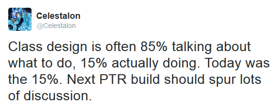 Celestalon: 职业设计中,85%是在讨论如何去做,只有15%真正实际去做过。今天就是这15%的内容,下一个测试服补丁将引起更多讨论。