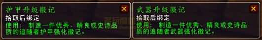 矮人地堡/战争工坊的军需官在6.1里出了依然出售的幻化装备外,每天还会提供一个日常任务,该任务允许你使用[钢铁部落碎片]兑换[武器升级徽记]与[护甲升级徽记]。