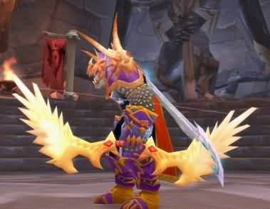 卡拉赞最终BOSS马克扎尔王子掉落,造型上无疑比天火鹰弓更大一截,有着一对更大的翅膀,射箭姿势非常好看,只是纯黄色略逊于天火鹰弓的火黄色……