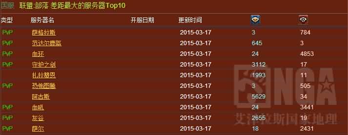 人数最多服务器Top10:影之哀伤 vs 贫瘠之地排名胶着。