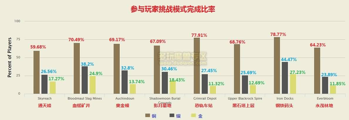 今天MMO汇总了德拉诺之王的地下城挑战模式的完成情况。数据样本为310万账号下打的610万角色。