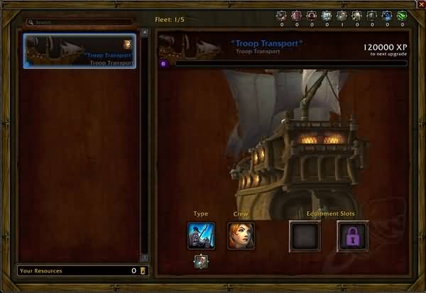 从昨天对于船坞系统的相关信息以及今天的该界面中,我们大致可以判断船坞是一个类似于要塞随从的系统,玩家只能通过派遣船只(相当于要塞的随从)执行任务,而不是真的可以自己开着船与钢铁部落打海战。