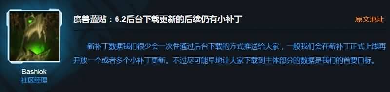 魔兽蓝贴:6.2后台下载更新的后续仍有小补丁