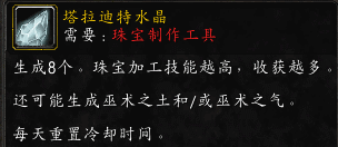 - 珠宝:生成8个塔拉迪特水晶,还可能额外获得巫术之火和巫术之土。