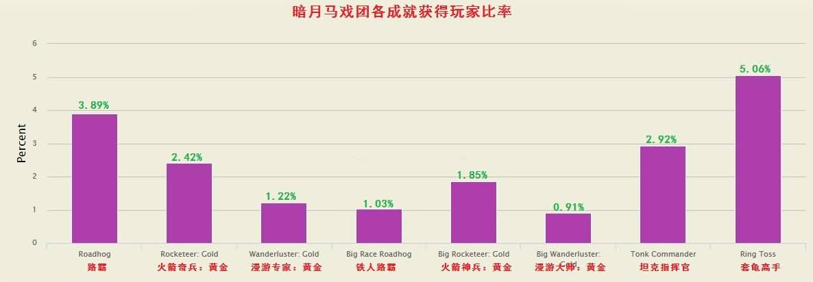 今天MMO汇总了玩家获得暗月马戏团各成就的比率。样本来自5月1日以后登陆过游戏的180万玩家。这里还有一个数据就是要注意的是参与调查玩家数量只剩180万了,须知道的两个月前调查可是有320万啊。