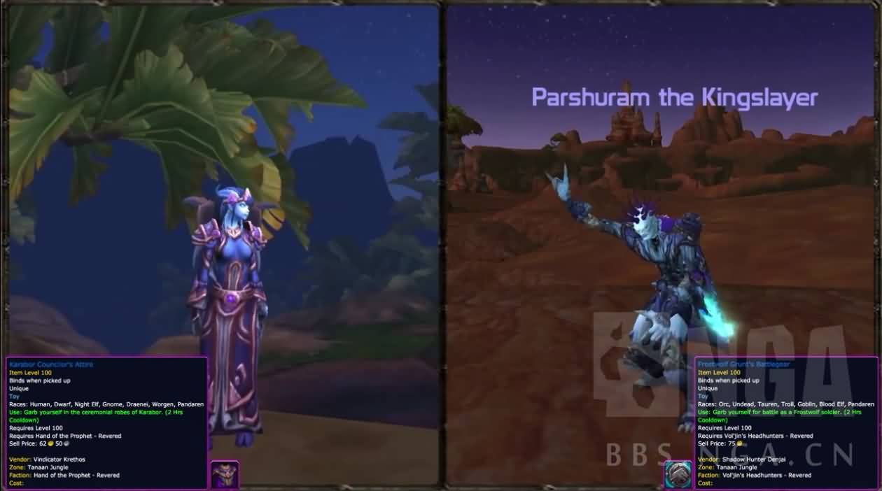 15.>联盟:[卡拉波议员礼服]部落:[霜狼蛮兵战甲]