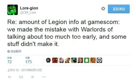 科隆游戏展军团再临信息量问题:德拉诺之王的时候犯过的错,很多内容我们说的太早,结果有的内容都没做出来。