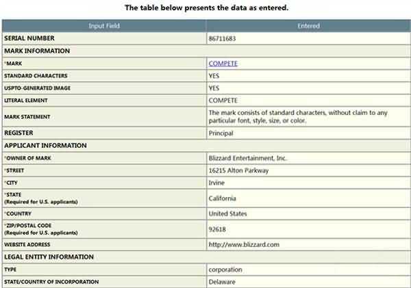 根据多家国外媒体报导,Blizzard登记“竞争”的商标权是为了让使用者可以组织、推动电竞赛事与创造并自定义赛事分组、天梯,还有追踪赛事进展、维护相关统计与发表结果的相关技术,所打造的以网络为基础的应用系统。