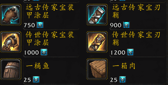 其他:90级和100级的传家宝升级物品,烹饪食材和食谱。