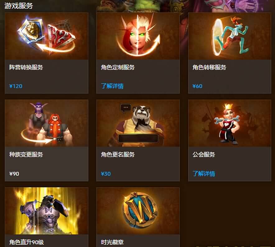 在美服的游戏内商城中现在已经提供了新的选择性付费服务项目,包括外观,阵营,姓名,种族的转换,可以使玩家更好地根据个人喜好改变游戏角色。