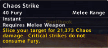 消耗40恶魔之怒,切割当前目标造成混乱伤害,暴击时会取消怒气消耗。