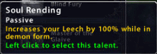 Soul Rending这个天赋,在恶魔型态下只要持续攻击,基本上不用担心血量了。