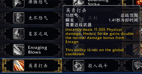 造成XX点物理伤害,在激怒状态下造成双倍伤害,不触发公共冷却。