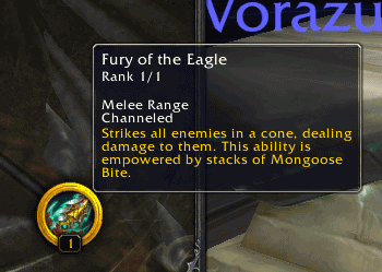 猛禽一击 消耗25集中值的基础单体填充技能 图标不再是以前那把铁剑了 而是狂暴战的狂风打击