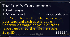 恶魔术的神器初始特质的伤害等于恶魔宠物的生命值的 10%,也就是说生命值越高伤害越高