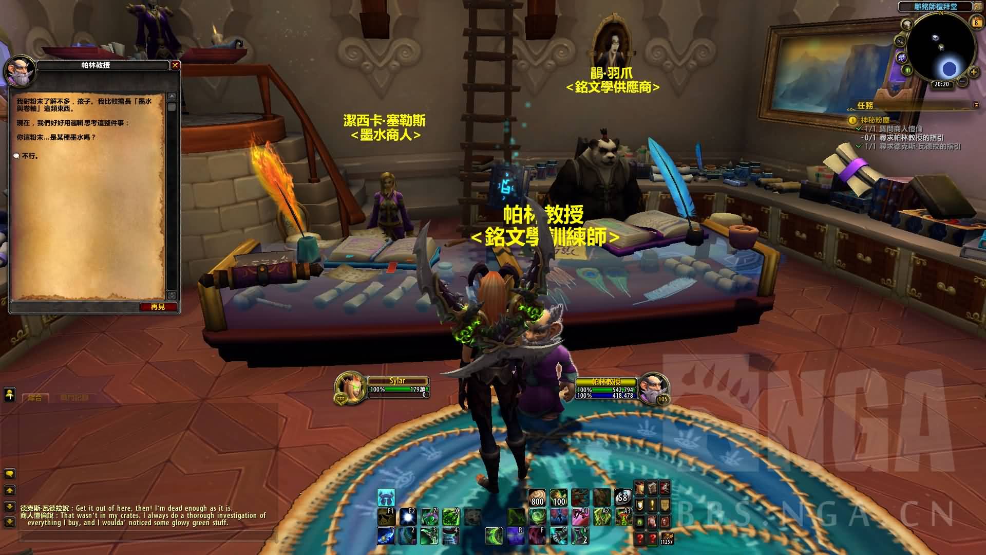 随后去询问铭文训练师柏林教授,而他也不知道这是什么,让我去找附魔训练师奈尔桑尼斯