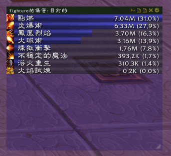 浴火重生:被动特质,点燃每造成一次伤害都有概率使凤凰火焰的充能时间降低2秒(实测为6S),并且造成额外的火焰伤害。(几率可以,然而造成的火焰伤害也是低的可以,不过还不清楚触发机制,是否为rppm机制等,伤害见下图蓝色标记)(总之是一个很强的特质)