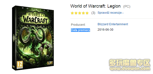 今天在波兰,荷兰和阿联酋的《魔兽世界:军团再临》预购网站上,都出现了军团再临版本发行日期的字样,显示是2016年6月30日。