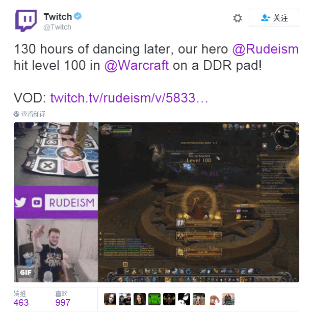 还记得那个立志要用跳舞毯在《魔兽世界》中玩到100级的Twitch主播吗?这个叫做Rudeism”的小伙终于在昨天完成了这个目标。而在满级后,他表示自己要回归正常的键鼠玩法了,看来自己也是受不鸟了,我们恭喜他脱离苦海。
