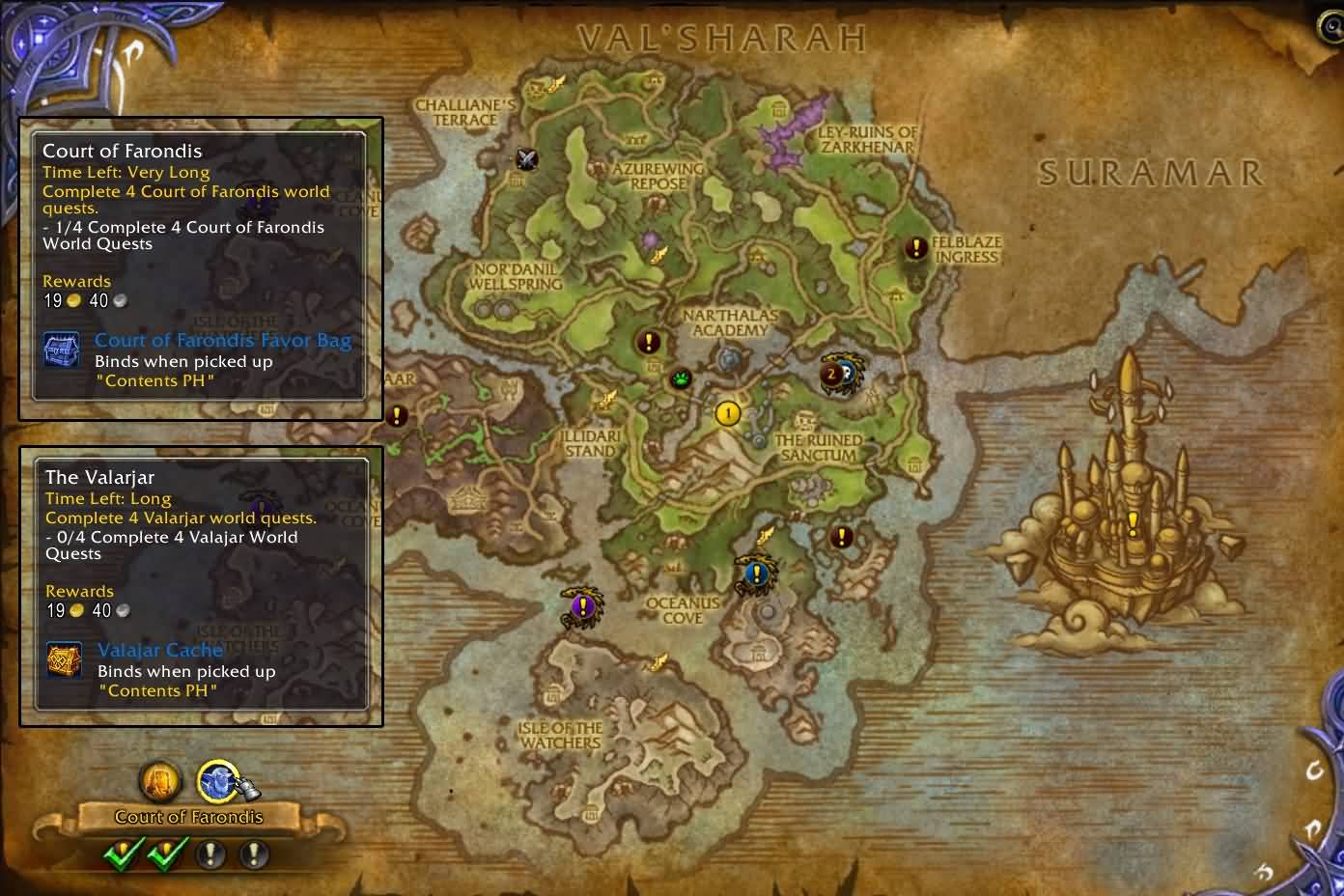 • 任务图标会指明任务类型是什么。PVP的图标是剑,其他一般的任务将会有相应的专业图标,战斗宠物图标,以及不同的稀有度颜色和边框。金龙边框一般是说明这个任务需要组队。