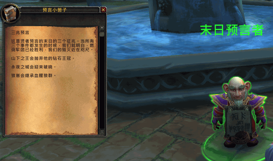 在7.0的前夕事件中,联盟和部落的主城都会刷新很多末日预言者,他们会在主城各处散布末日将至的信息。