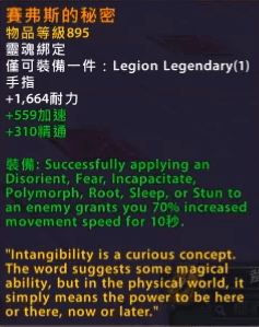 特效:每次对敌人成功施放迷惑/恐惧/定身/睡眠/昏迷/瘫痪/变形,移动速度提高70%。