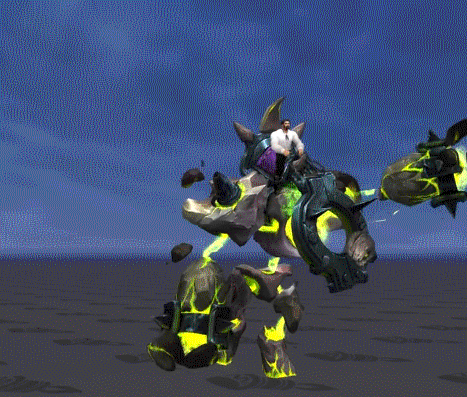 军团再临中的新增坐骑,五色地狱火坐骑新增加了一个命令动作,如果你输入/mountspecial指令的话,它会将自己的头摘下来抛向空中。