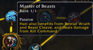 百兽之王是最重要也是我们需要首先点出的大特质,使哈提也受到红人的增益,并且会通过杀戮命令造成伤害。这个特质点出后,红人和杀戮的重要性大大提升。
