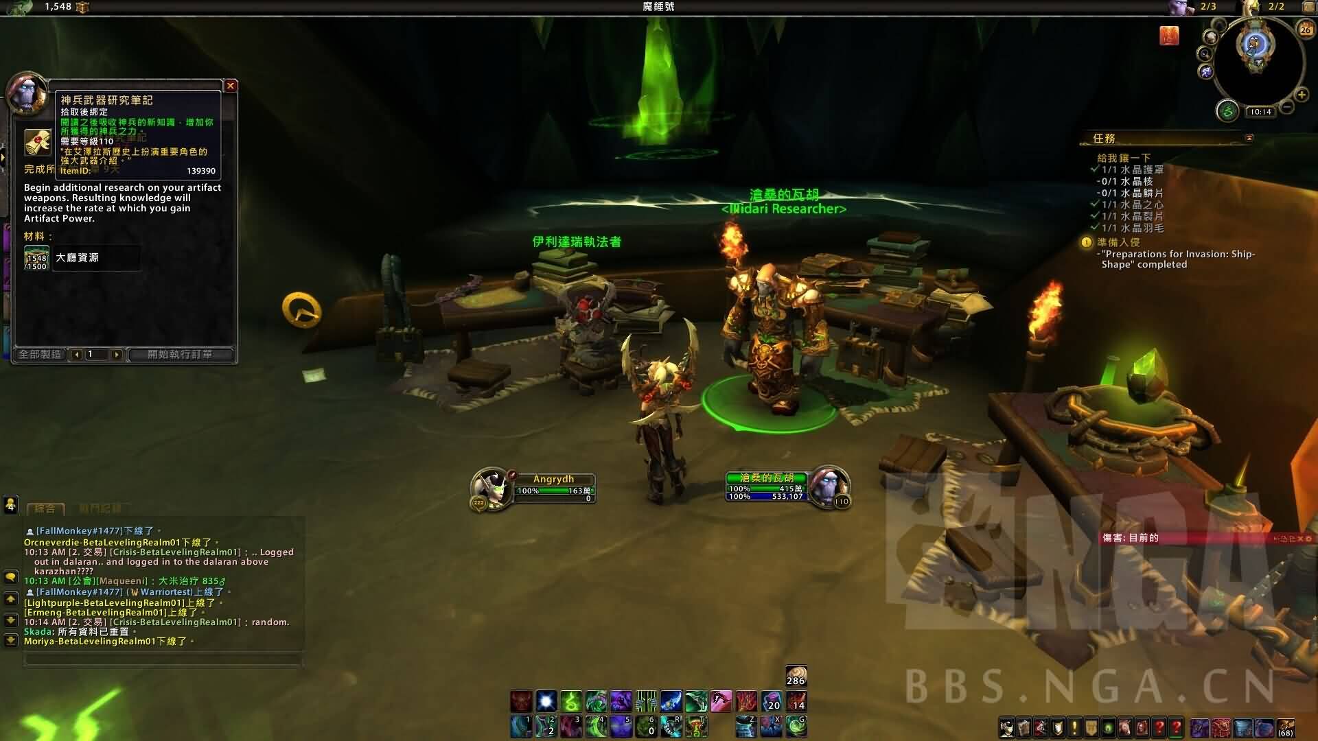 会在职业大厅内接到神兵武器研究笔记的任务,要求你到藏宝海湾/血色修道院/黑鸦堡/幽暗通道找四个任务物品。