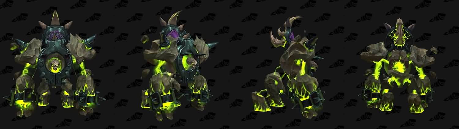 另外之前已经公布的两款地狱火坐骑,已经确定分别掉落于英雄/普通级别古尔丹(绿色)和史诗级别古尔丹(红色)