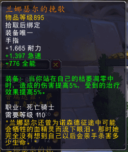 由于面板急速会影响到多件橙装的测试效果,尤其是腰带与护腕对于吸血鬼之血的作用,所以测试取血DK在进入团本时所普遍能达到的一个较为理想的急速值来测试。