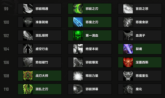 切天赋不用重新换技能,邪能之刃跟恶魔之咬放一个按键